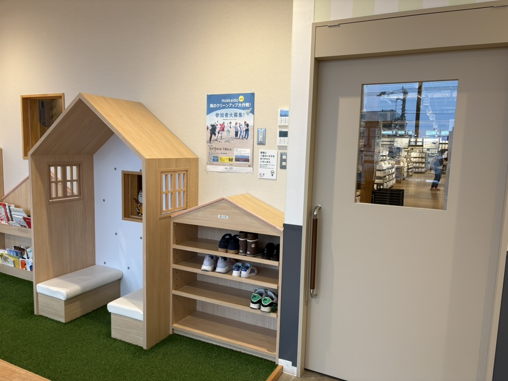 お待ちの間は、遊び場や絵本もあります。お買い物もOK。